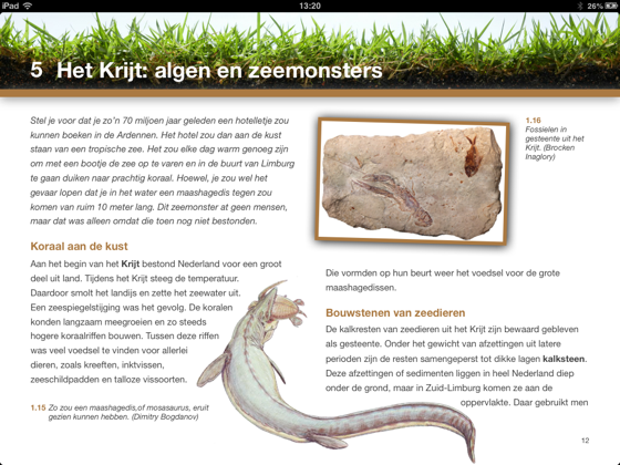 ‘Onder de grond’ neemt je mee op een reis door de Nederlandse ondergrond. Naast tekst en beeld bevat dit interactieve boek vele filmpjes, animaties, kaarten, infographics en 3D-modellen. Met je vingers zet je continenten in beweging en laat je 3D-modellen van parkeergarages kantelen en draaien. Je ziet hoe hier ooit dinosaurussen en mammoeten rondliepen. En welke griezels er tegenwoordig allemaal onder een stoeptegel krioelen. ‘Onder de grond’ is een even avontuurlijk als leerzaam boek over de onderkant van Nederland.